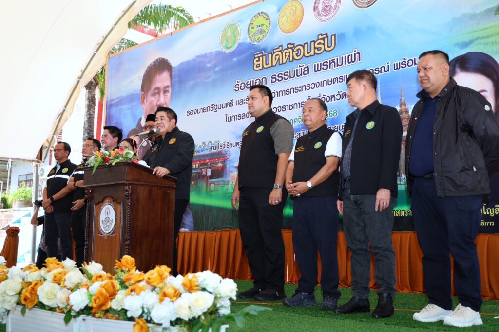 วันที่ 8 พ.ย.68 ร.อ.ธรรมนัส พรหมเผ่า รองนายกรัฐมนตรี และ รัฐมนตรีว่าการกระทรวงเกษตรและสหกรณ์ พร้อมด้วย ศ.ดร.นฤมล ภิญโญสินวัฒน์ รัฐมนตรีว่าการกระทรวงศึกษาธิการ นายอัครา พรหมเผ่า รัฐมนตรีว่าการกระทรวงพัฒนาสังคมและความมั่นคงของมนุษย์ และนายอามินทร์ มะยูโซ๊ะ รัฐมนตรีช่วยว่าการกระทรวงเกษตรและสหกรณ์ ลงพื้นที่ จ.ปัตตานี โดยได้เดินทางไปยังโรงเรียนดรุณศาสน์วิทยา และมหาวิทยาลัยสงขลานครินทร์ วิทยาเขตปัตตานี เพื่อพบปะประชาชน และรับฟังปัญหาในพื้นที่ พร้อมทั้งมอบโฉนดเพื่อการเกษตร โฉนดต้นยางพารา และปัจจัยการผลิต โดยมี นายยูนัยดี วาบา สส.ปัตตานี พรรคประชาธิปัตย์, นายสัมพันธ์ มะยูโซ๊ะ สส.นราธิวาส พรรคกล้าธรรม และนางสาลีฮะ มะยูโซ๊ะ นายกเทศมนตรีเมืองสุไหงโก-ลก ให้การต้อนรับ