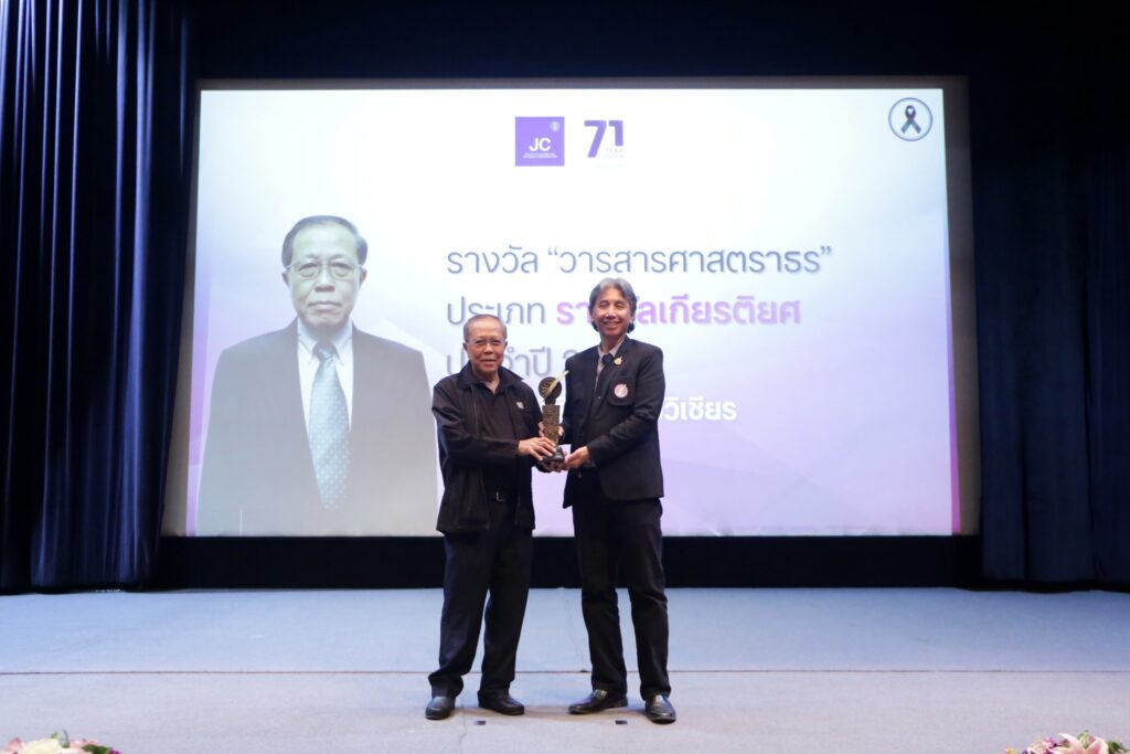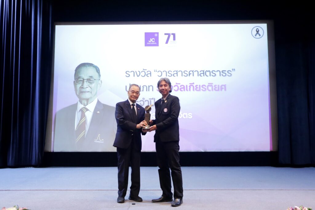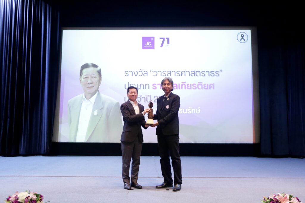 สมาคมวารสารศาสตร์ ธรรมศาสตร์ ร่วมกับ คณะวารสารศาสตร์และสื่อสารมวลชน มหาวิทยาลัยธรรมศาสตร์ จัดพิธีมอบรางวัล“วารสารศาสตราธร” ประจำปี 2568 เนื่องในโอกาสครบรอบ 71 ปี การสถาปนาคณะฯ เพื่อเชิดชูและประกาศเกียรติคุณบุคคลต้นแบบที่ใช้พลังแห่งการสื่อสารอย่างสร้างสรรค์เพื่อสร้างการเปลี่ยนแปลงเชิงบวกให้สังคม