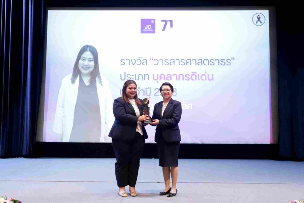 นางสาวนันท์นภัส บุญเลิศ บุคลากรผู้ทุ่มเทในการปฏิบัติงานและเป็นกำลังสำคัญในการขับเคลื่อนภารกิจของคณะวารสารศาสตร์ฯ ด้วยความมุ่งมั่น เสียสละ รับผิดชอบ และเป็นแบบอย่างที่ดีของบุคลากรที่ทำงานเพื่อประโยชน์ส่วนรวมและพัฒนาองค์กรให้เติบโตก้าวหน้า