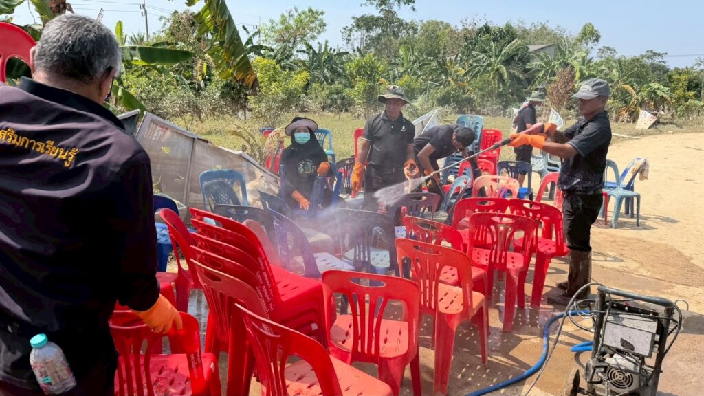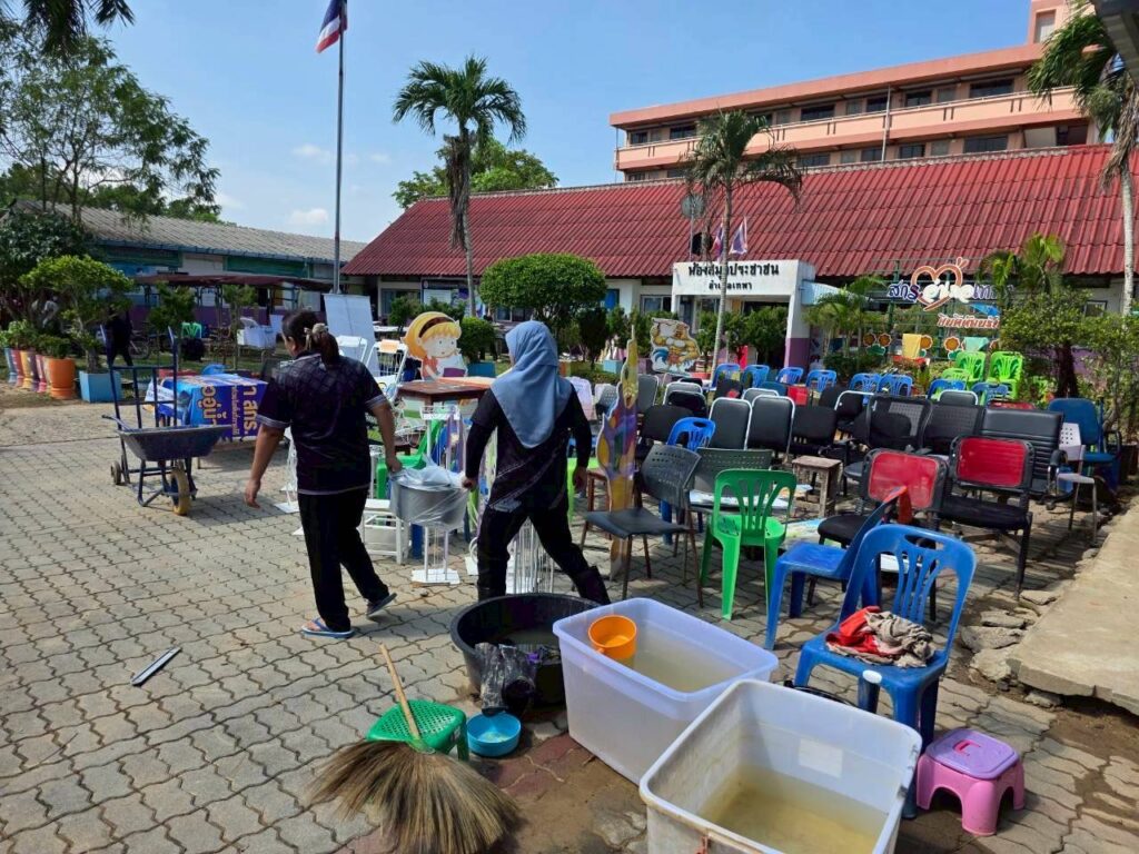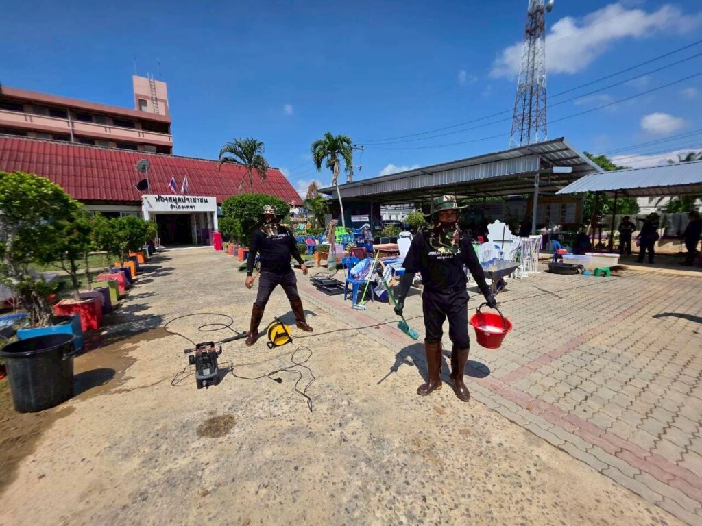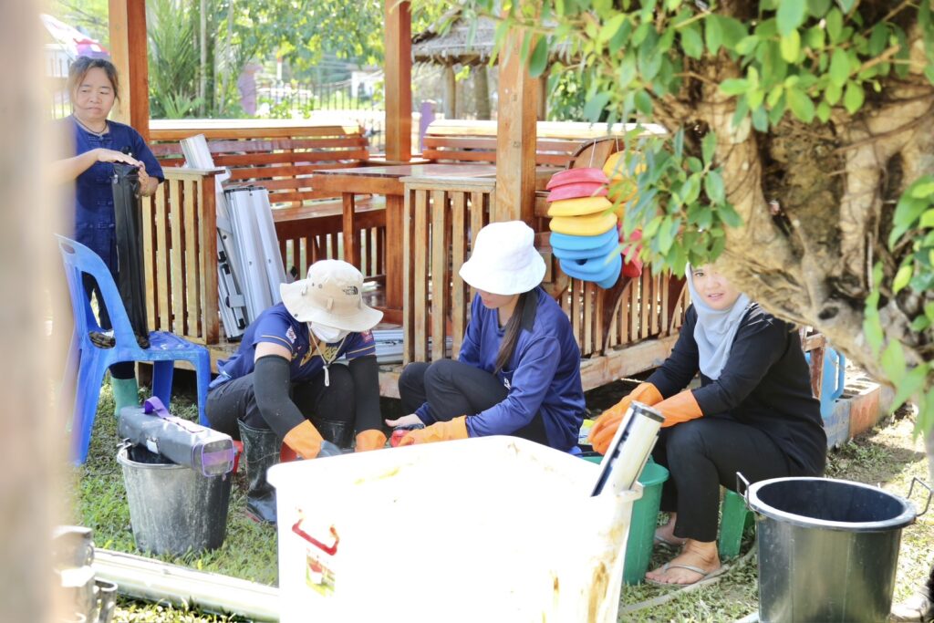 จุดที่ 10 โรงเรียนบ้านบึงพิชัย ทำความสะอาด ล้างวัสดุอุปกรณ์ โดย จิตอาสา สกร.จังหวัดสตูล