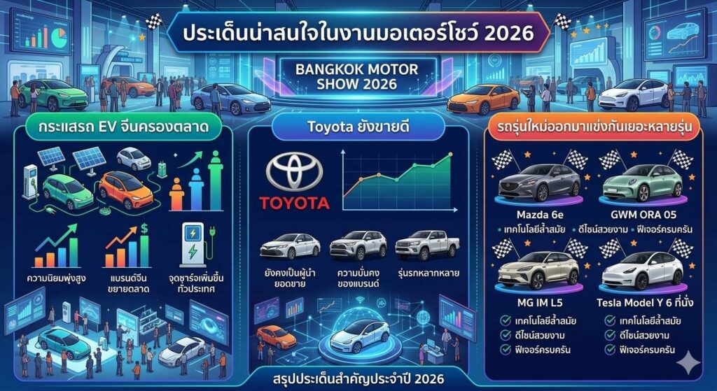 ไม่ใช่เรื่องเกินความคาดหมาย เมื่อยอดขายรถงานMotor Show 2026 รถEv แซงรถน้ำมันไม่เห็นฝุ่น แต่ที่เกิดคาดคือยอดจองรถมาสด้านไฟฟ้า รุ่น 6E ล้นหลาม!
